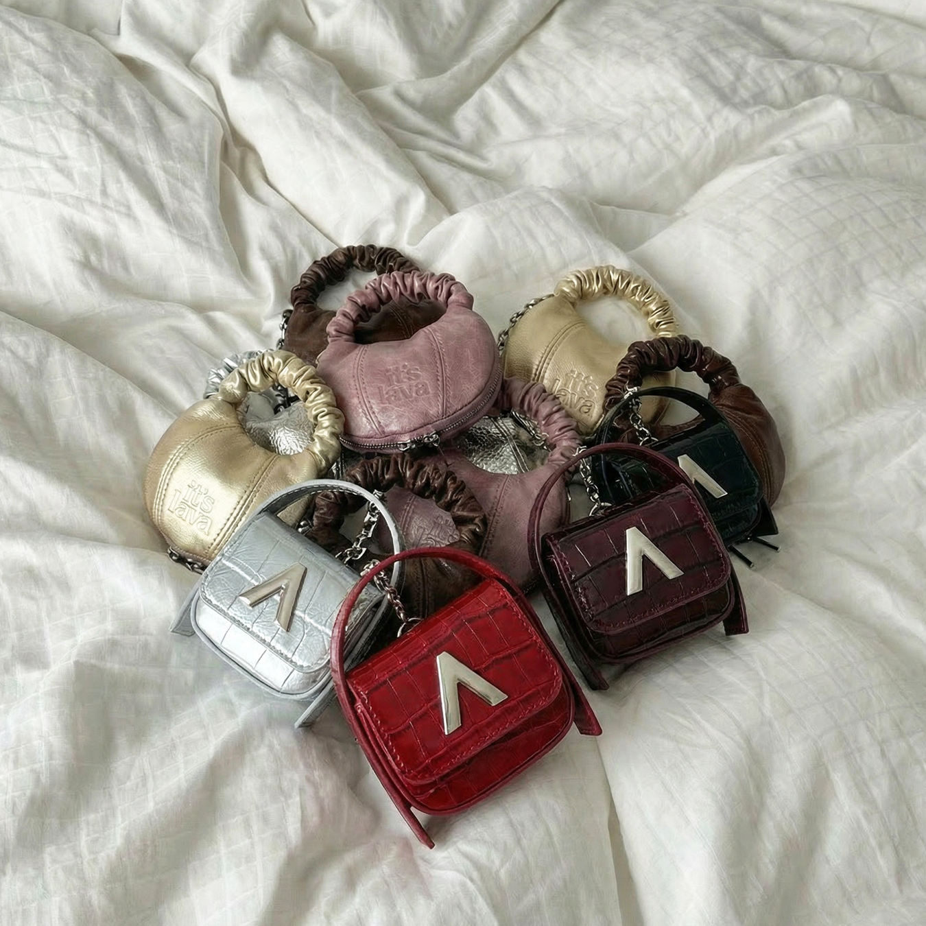 Ale is a mini bag but it fits all the essentials. The flap closes with a magnet button, inside it contains a pocket without a zipper and a second pocket for a lipstick.